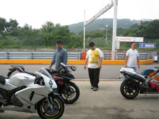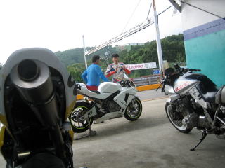 14:50〜15:15(3本目) 午後からはGSX−Rで走行しました。 タイヤを新車装着時のブリヂストンからDUNLOPになりましたが、フロント周りのフィーリングはまだ良くありません。 ジャダーこそ発生しませんでしたが、その前兆は感じられました。 試しにジャダーを出してみたかったのですが、恐怖感があり、再現はできませんでした。 ただ、ブレーキパッドとタイヤを交換したことにより、ジャダーは起きにくい方向にはなっている感じです。 このため、最終コーナー入口では、兆候が出るとブレーキをリリースして、コーナーに入っていかなければなりませんので、思いっきり行けません。また、アウト側にマージンを残しての進入になります。 また、最終に思いっきり入れないので、その手前の右高速も甘めになっているようです。 最終コーナー入口がそんな感じですので、コーナーの真ん中と出口では、向きが変わっていないようで、最終の出口部分でまだバイクが寝ています。 そのため、アクセルを開けるタイミングが遅いようで、K1ではストレートの最終スピードで210キロ以上は出ていましたが、K5では200キロがやっと、と言う結果になっており、そのままタイムに反映しています。 今回、タイヤはDUNLOPのD208GPA RRに変更しました。 この位のタイムですはグリップ力は十分にあり、滑ることは皆無です。 当然ですが、CBR600RRのD209 ミディアムコンパウンドほどの接地感はありません。 K5の特性と併せて、腰高な感じがあり、K1の様に身体をバイクに任せる様な乗り方は出来ません。 その替わりに、S字での軽快感はあります。 D209同様にもう少し、空気圧を下げると、接地感が変わる可能性はあると思います。 (当日は確認出来ませんでした) |