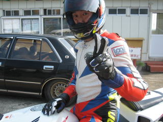 9:30〜10:00(2本目) 2回目はもう少しタイヤのエアー圧を落とし、前後1.7キロで走行しました。 1.7キロに落とした場合、癖がなく普通のタイヤに感じられます。 寝かし込みや切り返しなども適度の粘りがあり、コントロールがしやすいです。 また、一定のバンク角で安定するような頑固さもありませんが、D208の様なグイグイ曲がっていくような強烈な旋回性は感じられませんでした。 タイム的には1.8キロの方が良いのですが、全然タイムが安定していないのであてには出来ません。 いずれにせよ、エビスを走る限り、このタイヤはとても好印象でした。 1本目の前半はひっちゃ気になって走り、後半は少し力を抜いて走った結果、力を抜いた方がタイム的に良かったので、2本目は力を抜いて走ってみました。 結果、力を抜きすぎた様です。 今ひとつ、タイムに結びつく走り方がわかりません。 すり鉢からの立上がりは、2速が正解だと思いますが、立上がりで3速の時があり、その場合は、便所前コーナーまでが遅くなります。 後から、コース図を眺めると、便所前から最終コーナーまでの距離はかなりあります。 便所前の立上がりを気合いを入れすぎてアウト一杯まで行くよりも、この区間はもっと大切に走って、平均スピードを上げた方が良さそうです。 |
