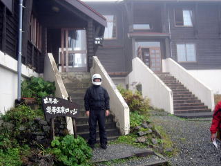 17:38 蓮華温泉ロッジに到着 2005年10月に泊まりのツーリングで蓮華温泉に泊まりました。 国道148号線の平岩から県道に入り雲の中を走ること22km、やっと蓮華温泉に到着しました。 蓮華温泉ロッジは山の中の一軒宿です。 すでにあたりは真っ暗で、ガス(雲)以外何も見ることができません。 すぐに宿に入ることにしました。 |