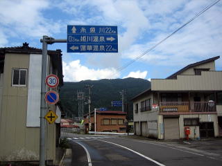 12:00 鬼無里に到着 平岩から国道148号線を南下し、白馬まで進み、昨日通った国道406号線”鬼無里街道”を逆戻りして鬼無里まで来ました。 天気はパッとしないものの、雨には降られず、昨日土砂降りの中走った道を、今日はドライで走ることができました。 この鬼無里街道、道幅は狭くタイトコーナーが続きますが、交通量は少なく、快適に走ることができます。 |