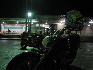 20:57 関越のパーキングでちょっと休憩。 2日間に渡り、雨の中走り続けたので、すっかりバイクは泥だらけです。 また、精を出してバイク磨きですね。 |