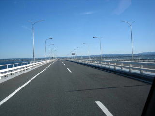 海上橋である、アクアブリッジは延長約4.6kmで、もっとも高いところで海面から30mあります。