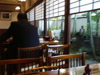 店内は広く、4人がけのテーブルが10卓以上あり、奥には座敷もあるようです。 (店の案内を見ると実際には全部で110席) 店内外とも日本屋敷の落ち着いた作りとなっています。 時間も2時半をまわっており、お客さんも自分の他にもう1人でした。 ”まずは”もり天そばを注文しました。 |