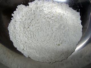 そば粉です。 写真では微妙に色合いがわかりませんが、完全にみどり色をしています。 前回のそば粉は”うぐいす色”と書いていますが、今回はそれを追い越して、まさに”みどり色”です。 第1ロットの「丸打ちそば粉」は新そばにもかかわらず、自分の力量では意外に上手くつながりませんでした。 そんなこともあり、今回はとりあえず、そば粉200g、つなぎ(強力粉)40gの外2、合計で240gの粉を打ちます。 |