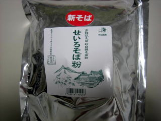 今回は柿沼製粉製の常陸秋蕎麦の”せいろそば粉”で打ちました。 柿沼製粉のホームページの製品紹介では、 「常陸秋そばの玄そばのなかでも特に粒の大きい(5.0mm以上)ものだけを集め毎分13回転による石臼にて挽いたそば粉。50メッシュ。うぐいす色にそばは仕上がり味、コク、粘りも超一級品。水ごねによるきこうちそばが可能。」 と書いてあります。 新そばで、挽きたて、しかも未開封ですので、つなぎ粉を使わないで十割そばで打ってみることにしました。 |