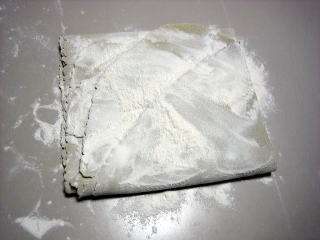 延ばして、たたみました。 生粉打ちにもかかわらず、麺体にかなりの粘りがあるので、ほとんど大きな割れはなく、たたむことができました。 一年中、これくらいの物が出来れば文句はないのですが、自分の腕前では夏場は無理ですね。 |