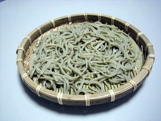 茹で上がりました。 ゆで時間はやや太めと言うこともあり、50秒としました。 緑と茶色の中間色のそばが出来ました。(^o^) |