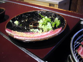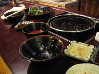 これで、ご飯があれば、『上焼肉定食』の出来上がり。 もう、何も言うことはありません。 ここの、炭火は無煙タイプではないので、いい具合に煙に燻されて、肉の旨味が増しているようです。 |