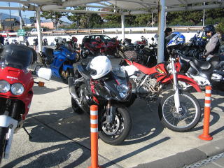 10:58 西湘バイパス 国府津パーキング 自宅のある蒲田を出発して、環状八号線→第三京浜→国道1号線→新湘南バイパスを経由して西湘バイパスの国府津パーキングエリアまで来ました。 夏場に比べれば少なくなりましたが、寒い中まだまだ頑張ってツーリングをしているバイクはかなりの台数です。 |