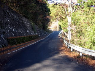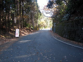 13:31 林道の入口に到着 林道の入口に到着しました。 午後になって気温は10℃以上はありそう、穏やかな日です。 ただし、路面には落葉が沢山落ちており、日陰の路面は濡れています。 滑りそうですので、慎重に行くことにしましょう。 |