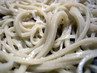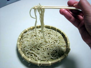 茹で上がりました。 ゆで時間は、40秒としました。 そば屋さんで目にする、標準的なそば色をしたそばが出来ました。 (^^) |