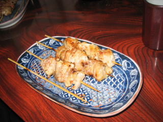 まずは『焼き鳥』。 ここかしわくらの焼き鳥は肉が厚く、ほくほくしていて、なかなかいけます、美味いです。(^o^) メインの料理の前に『焼き鳥』をいただきます。 4本で520円、コストパフォーマンスも良いのです。 |