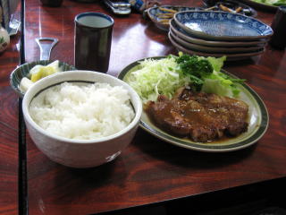 続いて、誰が注文したか忘れましたが、『生姜焼き』 この7〜8mm以上もある肉厚の生姜焼きは、いかにも『豚肉食べましたぁ。』と言えるボリュームです。 ここ、かしわくらの料理はどれも頼んでも、物足りないと言うことはなく、十分満足できる量があり、自分としても大変満足出来ます。 |