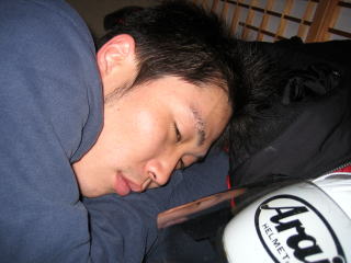 食事の後に、惰眠をむさぼる、オパミン。 (半分、目が開いてます) それに、完全に寝に入っている、とだっち。 とだっちはどこでも、寝られます。寝るのも一番早いです。 Ryo@Mさんは寝るときもスキがありません。 |
