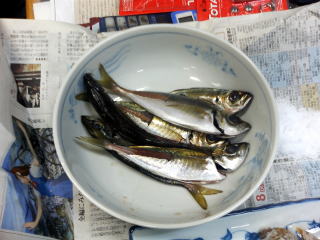 アイスエイジさんの趣味は釣りです。 写真で見ての通り、最近はアジ釣りに行っている様です。 今回は、その釣果をゴチになります。 以前は積極的にバス釣りに行っていた時期があり(今は一時休業?)、釣りが趣味でない自分からすれば、食べられない魚を釣って何が面白いんだろうと、(口には出しませんが)心の隅で思っていたものです。(書いちゃいました)(^^;) それと比較すると、食べられる魚の釣りは自分としては大歓迎です。 |