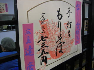 タカシマヤの店内に入り、クラシカルなエレベータに乗り8階の催し会場にきました。 催し会場の一角に、店舗を発見! 時間はすでに2時近くですが店の前には7、8人が並んで待っていました。 と言っても、蕎麦屋ですから、長っ尻は無いので、すぐに順番は廻ってくるでしょう。 待つことにします。 写真の撮影は他のお客さんの失礼になるので写しませんでしたが、仮設店舗の作りは意外に小さくカウンターのみで12人程度が座れる広さでした。 蕎麦の打ち場とは別に厨房では5人の男性と2人の女性が蕎麦を茹でたり、盛りつけたり、ザルや食器を洗っていました。 また、店内には給仕係として2人、お勘定処に1人という構成で、その他に打ち場に2人いますので、客の数と同じくらい店員がいることになります。 |