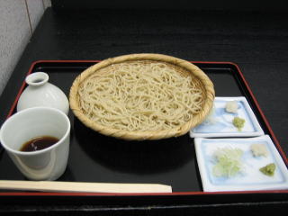 その後、5分ほど待って、店内に入ることが出来ました。 注文したのは”もりそば”(もりそばしかありません!-_-; 2枚にしようか、3枚にしようか悩んだのですが、3枚で¥2,205−。 平日の昼飯には高すぎます。2枚にしました。 (お冷やかお茶は出して欲しいものです) しばらくして、もりそばが出てきました。 意外にも量は普通です。 普段都内の蕎麦屋さんの少ない量を見慣れているからでしょうか。 |