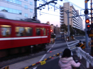 しながわ翁の場所は以前インターネットで見たので大体の場所は覚えていました。 品川プリンスから京急の北品川に向けて歩きます。 京急の踏切を越えると、右手に北品川のプラットホームを見ることが出来ます。 場所をうろ覚えだったため、近くの高浜運河周辺をさまよい、ぐるっと一周することになってしまいました。 |