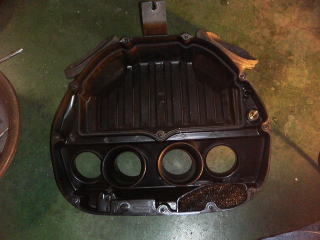 エアークリーナーボックスを外すと、こんな感じ。 インジェクションの入口とヘッドが見えます。 コイル兼用のプラグキャップを外せば、プラグの交換は出来ますが、1番と4番はフレームが邪魔なのと、プラグの穴が深いので、それなりの工具が無いと交換はちと難しい。 |