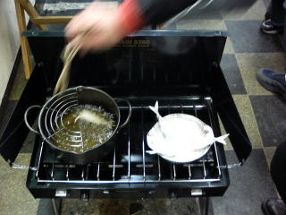みんな何を待っているかと言うと、アイスエイジさんが釣ってきた鯵を調理して唐揚げにするのを待ってます。 今週末も店内は揚げ物の臭いが充満しています。 |