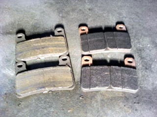 ほぼ終了のカーボンロレーヌのブレーキパッド(左)と以前使っていた純正のパッド(右)。 カーボンロレーヌのパッドは10,021−2,541=7,540km使用して、真ん中の溝がなくなる直前でした。 右の純正パッドは2,541km使用した状態です。 ノーマルパッドだとブレーキが熱くなったとき、引きずるようなブレーキングをするとジャダーが出るので使っていませんでしたが、4月ぐらいまで寒い時期なら問題ないでしょう。 (本当はブレーキングのローターに交換したいのだが・・・・結構高い) |