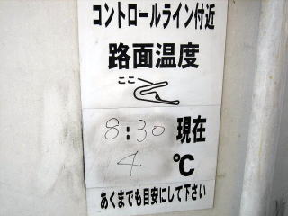 8:58 路面温度はなんと4℃。 グリップするのだろうか??? |
