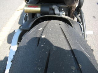 11:18 走行2本を終えた次点での、タイヤの状態です。 久しぶりのサーキット走行と言うことで、走り始めの写真を写すのを忘れました。 エアー圧は前後ともに1.9キロ。 特に高いとか、低いとかは感じませんでした。 |
