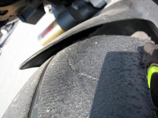 11:18 リヤタイヤの右側。 右コーナーの多い筑波では当然、右側が先になくなります。 と言うことで、リヤタイヤ終了。 ですが、今回のタイヤは最後の方までグリップを失わず走ることが出来ました。 (このタイムじゃ、当たり前か) アイスエイジさんからの情報では、以前のモデルよりも消耗したときのグリップ特性が改善されているそうです。 |