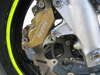 11:19 良い具合にパッドがこびり付いています。 このBRAKINGのディスクの効き具合は申し分ないです。 握り始めに「じわ」と効いてきて、握れば握るほど効いてくるような感じです。 ディスクによって、フィーリングはかなり変わるもんですね。 気に入りましたので、GSX-R1000用も注文しちゃいました。(^_^;) |