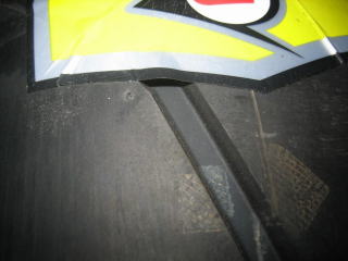 このα10以前履いていた208 RRよりは耐久性はあるそうです。とα10の発表試乗会で言ってました。 確かに、ご覧の通り、溝が深い! 減りが早いので、ゴムを”てんこ盛り”にしてみました。と言った感じです。 これで、グリップ力が同等でライフが長くなるのであれば、歓迎です。 |
