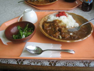 12:54 昼食です 先ほど、朝食をご案内したばかりですが、もう昼食です。 船室でゴロゴロしているだけなので、お腹も減りません。 しかし、レストランの営業時間が12:00〜13:00なので時間を逃すと食事にありつけなくなるので昼食にします。 昼食は「横須賀海軍カレーセット」ドリンクが付いて800円也。 (朝食の価格設定とこの価格設定に疑問が湧きます) ただし、サラダの盛りが少ないのは、写真を撮る前に食べてしまったから・・・(^^;) |