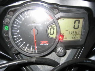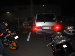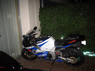 22:42 ”プチおさ1号”号? バイクの駐輪場には1台のGSX−Rが。 すでに到着済のプチおさ1号さんの愛車、GSX−Rでしょう。きっと。 とりあえず、写真に納める。 |