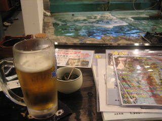 まずはビールで乾杯! 風呂(温泉)上がりのこの一杯は全国いや世界どこに行っても変わらない旨さ。(^^) |