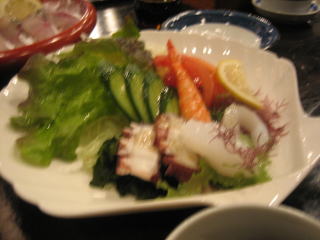 続いて、海鮮サラダ。 この間も、生ビール→焼酎と杯が進んで行きます。 海鮮サラダもなかなかです。 特に、天草名産のタコ刺しはGOODでした。(^_^) |