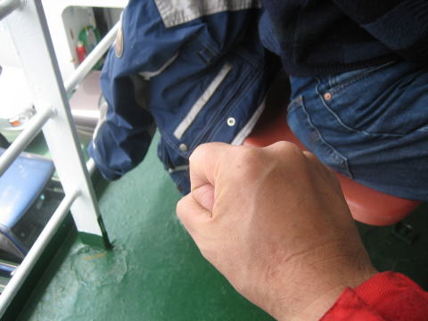 11:21 とりあえずジャンケン フェリーに乗ってしまったら、やることはありませんので、とりあえずジャンケン。 ガァァァン! このときのために、2日間チョキを出し続けてたのにぃ。 グーで負けました。(T_T) |