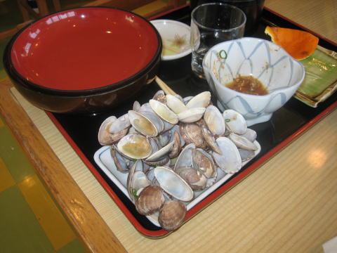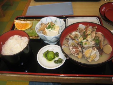 14:02 貝汁定食 今日の昼食はちゃんと写真が撮れました。 どうも、麺類だと、デジカメより先に箸が出てしまう様です。(笑) 注文は貝汁定食、850円也。 アサリのみそ汁がてんこ盛りです。 昼飯が出てくるまでの間、今夜の宿の手配をします。 雲仙周辺の温泉に予約の電話を入れます。 が!、ゴールデンウイーク後半が始まりどこも予約で満室、予約が取れません。(^^;) Ryo@Mさんと電話をかけまくりますが、どこも予約が一杯です。(^_^;) 雲仙の温泉は諦めて、今度は天草側で予約にチャレンジ。 |