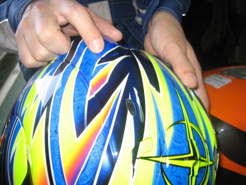 10:17 ここにキズがぁー 今回、下ろしたおニューのヘルメット、キズが付いてしまいました。(T_T) あーあっ |
