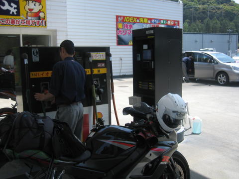 12:46 諫早で給油 雲仙普賢岳を後にし、国道57号線で西走し雲仙温泉を抜け、さらに西走して諫早まできました。 雲仙温泉から諫早までの道は交通量も多く、道幅を狭いため、四輪車の後ろに付いて走らなければならず、すでにお昼をすぎてしまいました。 ここ、諫早で給油をして先を急ぐことにします。 今晩は唐津にある仕事仲間のIさん宅にお邪魔することになっています。 Iさん宅では、今日仲間たちが集まってバーベキューパーティーをやります。 Iさんに電話をすると、準備できるから夕方早めにおいでとのこと。 |