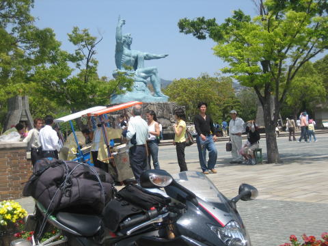 13:25 長崎平和公園に到着 諫早でガソリンを給油後、古賀市布ICから長崎バイパスに上がり、長崎市内に入り長崎平和公園までやってきました。 平和公園では平和祈願像をバックに写真を1枚。 |