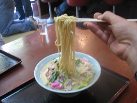 13:42 長崎チャンポン 長崎と言えば、長崎チャンポン。 皿うどんも捨てがたいのですが、どちらか一品選ぶとすると、自分はやはりチャンポンです。 注文したのは”特製チャンポン”具だくさんで750円。 今、夕食前にレポを書いていて、写真を見ているだけでも生唾が出てきます。 美味しゅうございました。 |