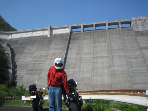 15:59 見上げれば 今度は、ダムの底まできました。 ダムの堤頂までは117m、近づいてみると天を仰ぐほどの高さ、でかい。 なかなか、ここまで近づけるダムも少ないですね、自分の経験では。 ちなみに、この厳木ダムは厳木川にあり、下っていくと松浦川に合流します。 松浦川はさらに下り、今日訪問するIさん宅の前を流れ、唐津湾に注ぎます。 |