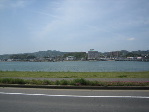 8:16 朝一番の 九州ツーリング、7日目の朝は唐津で目が覚めました。 目の前には松浦川の河口が広がっています。 もしかして、今回のツーリングで一番景色の気持ちのいい朝かもしれません。 二日酔いではありませんが、何となく気だるさが残っていました。 |