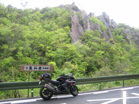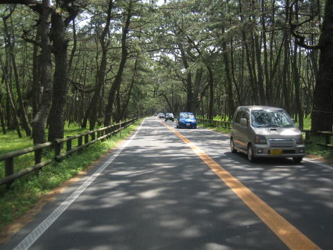10:40 虹の松原 唐津の名勝、"虹の松原"を通り東に向けバイクを走らせます。 松の枝の間から射込む光は初夏を感じさせます。 |