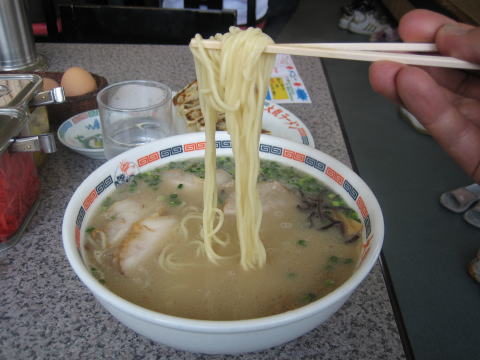 12:51 久留米ラーメン JR久留米駅で繁華街らしきものが見あたらなかったので、ツーリングマップルに書いてあった、地元で人気のラーメン屋”大龍ラーメン”にやってきました。 久留米ラーメンは博多・長浜ラーメンとはやや異なり、細麺ではなくやや太麺が特徴だそうです。 スープはご覧の通り、こってり豚骨。 美味しかったですが、少々自分には脂が強すぎました。 (最近、ちょっと脂っこいものを控えています) |