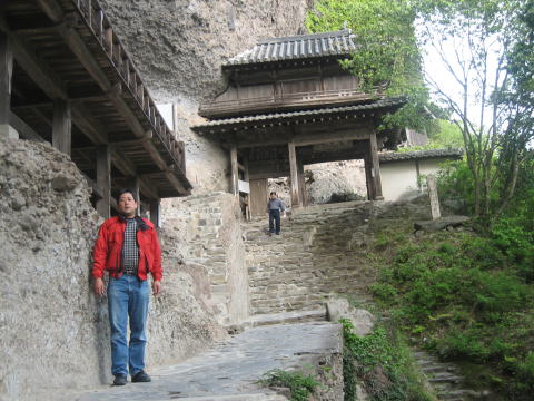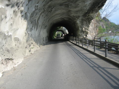 16:04 青の洞門 国道212号線を10分ほど走って、「青の洞門」に到着しました。 青の洞門は昔々、禅海という人が30年かけてノミとツチだけで掘ったと言うトンネルだそうです。 |