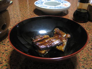 19:39 鰻の蒲焼き 最後の締めは、ウナギの蒲焼きとゴハンです。 (旅館の女中さん・・・違った。ホテルの従業員は天然物と言っていましたが) どうみても、一家で経営しているようにしか見えませんでしたが、どれも美味しゅうございました。 |