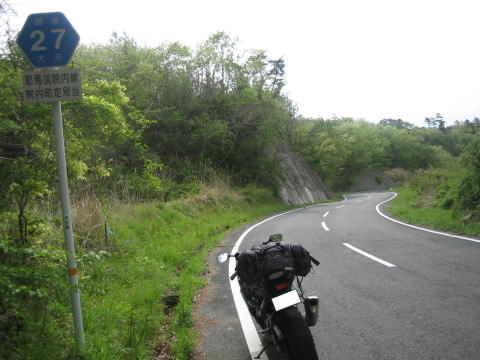 8:39 県道27号線 宿のある深耶馬溪を出発して、県道27号耶馬溪院内線を東進します。 ゴールデンウイーク中、九州を走って感じたことは、流石に海沿いの道は交通量も多く渋滞している箇所も多々ありましたが、少し内陸に入り、3桁国道や県道になると交通量も少なく軽快に走ることが出来ます。 ここ県道27号線も、ご覧の通り軽快に走ることができます。 |