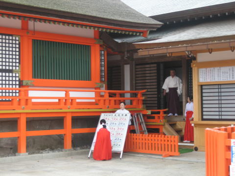 10:03 巫女さんたち 宇佐神宮ではいたるところで巫女さんがいました。 (結構、みんな若い子ばかりです。←表現がオヤジです) 午前中の早い時間の引き締まった空気の中、境内の掃除をしている巫女さんの姿には”凛”とした美しさが漂っていました。 もし、みなさんも時間があれば、午前中の早い時間に、ここに寄ってみることをお薦めします。 |