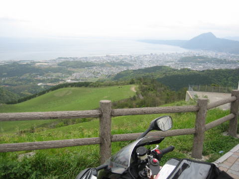 13:04 別府湾を望む 血の池地獄を見た後は、市街地の喧噪(けんそう)を抜け出し、伽藍岳(がらんだけ)(硫黄山)の中腹にあるテレビ塔までやってきました。 テレビ塔の脇からは別府市街を一望することが出来ました。 (夜きたら街の夜景がとてもきれいそうな場所ですね) |