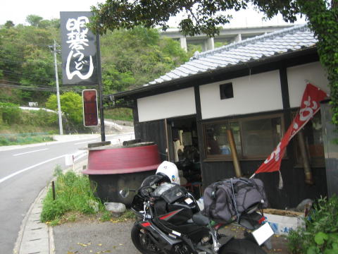 13:13 昼食です 時計の針もお昼を回り、1時を過ぎました。 お腹も空きましたので、昼食を取ることにします。 テレビ塔に行く途中の明礬(みょうばん)温泉で、”おそば”の幟を見かけました。 九州にきて蕎麦を一回も食べていなかったので、寄ってみることにしました。 お店の名前は、”明礬”の地名から「明礬うどん」 うどん屋さんです。 |